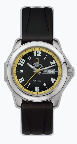 Stainless Steel Case, Day and Date display at 3 O'Clock, Black Rubber Strap