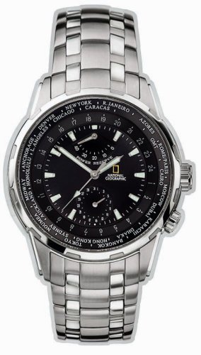 Part of the national Geographic Signature Collection, the Pharaoh is impeccably detailed with a reverence to the past and future, and is encased with sapphire crystal to resist scratches even from the Egyptian cat goddess, Bast. Water resistant to 330 feet so archaeologists and explorers alike are equipped with a timepiece that will withstand the sands of time. . . . . Stainless Steel Case and Bracelet . . World Time Function for 22 Cities . . Dual Time . . Power Reserve for over 40 Hours with Indicator . . Shock Resistant . . Luminous Hands and Markers . . Screw-In Crown . . Date Indicator Subdial . . City Adjustment Crown . . 24 Hour Inner Rotating Bezel . . Multi-City Rotating Bezel . . Sapphire Glass Crystal . . Water Resistant to 100 Meters (330 Feet) . . Japanese 21 Jewel Automatic Movement with Power Reserve . . Bracelet Features a Fold-Over Push Button Deployment Clasp . . 42mm Case Width (Approximately 1 5/8") . . 13mm Case Thickness (Approximately 1/2") . . Weight: 187 Grams . .